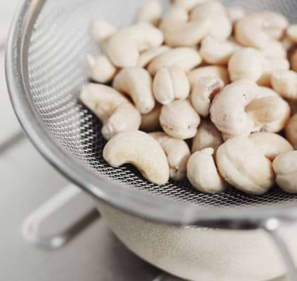 2. Egouttez et rincez les noix de cajou.
