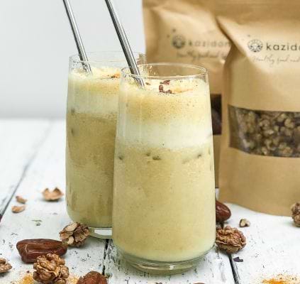 Mocktail au lait de soja, dattes, eau de rose & curcuma