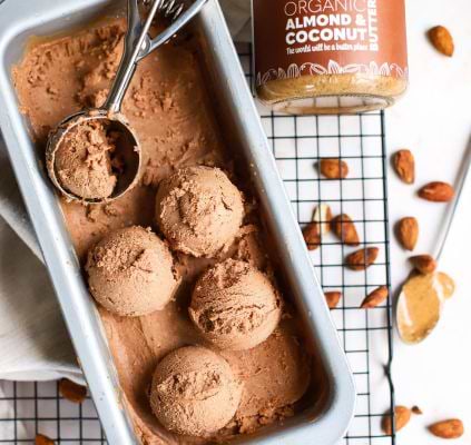 Glace vegan au cacao et purée d'amandes & noix de coco (IG bas)