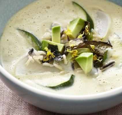 - Add cooked rice, zucchini, turnips, avocado and lemon zest.