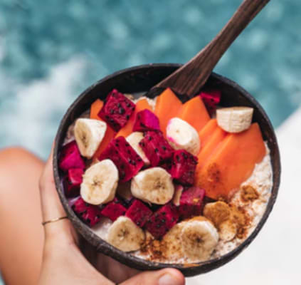 - garniture : noix de coco râpée, baies de goji, graines de chia