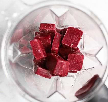 - Mettre dans un blender les glaçons de smoothie avec des glaçons d'eau.