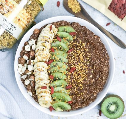 - Lorsque tout est prêt, parsemez votre porridge de graines de pollen et de baies de goji.