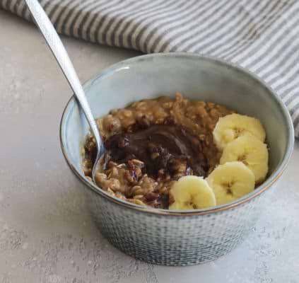 Versez le porridge dans un bol et dégustez avec 1 càs de Nocciolata et 1/2 banane.