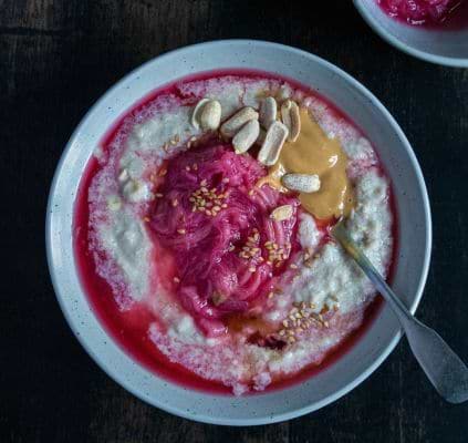 Porridge de quinoa, rhubarbe et beurre de cacahuète