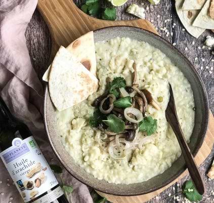 - Faire chauffer un peu d'huile d'arachide dans une poêle et faire revenir ¾ des échalotes et l'ail jusqu'à ce qu'ils soient tendres, puis ajouter le curry, le piment rouge et la moitié des graines de moutarde pendant 2 minutes.