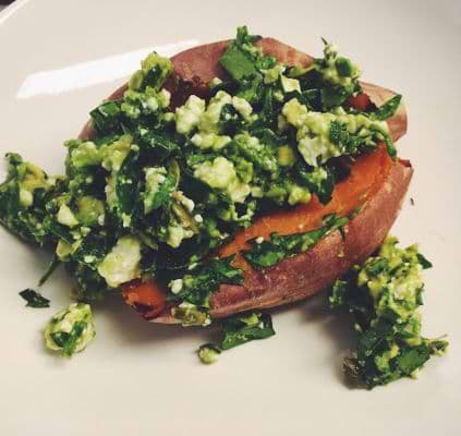 - Quand les patates douces sont cuites. Ouvrez-les en deux et remplissez-les de la farce.