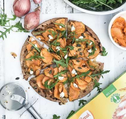 Pizza aux patates douces, feta et graines de courge