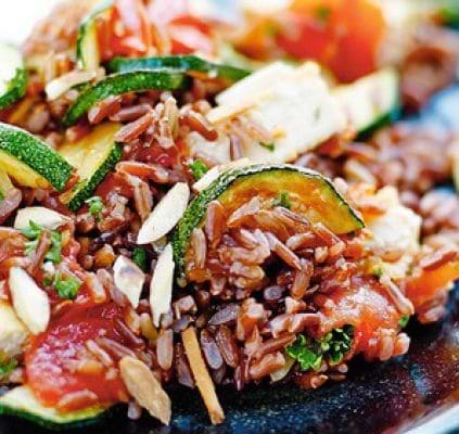 - Faites cuire le riz rouge dans de l’eau salée pendant 25 minutes à feu doux