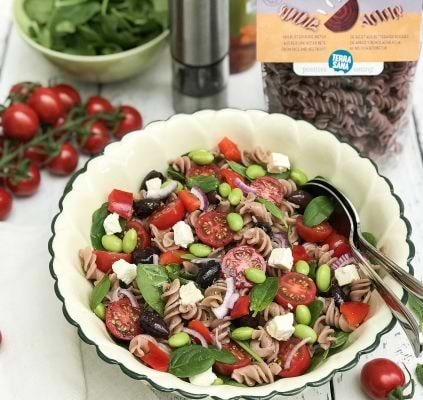 Si vous aussi vous aimez les salades de pâtes l’hivers, essayez cette recette à base de pâtes sans gluten au pois chiche, hyper gourmande et simple. Les pâtes de légumineuses sont une bonne alternative pour limiter sa consommation de gluten. De plus elles sont riches en protéines végétales. Le mélange artichauts, olives et zestes de citron fonctionne à merveille et devrait vous régaler !