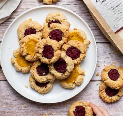 - À l'aide de votre pouce ou du dos d'une cuillère, faire un creux au centre de chaque biscuit.