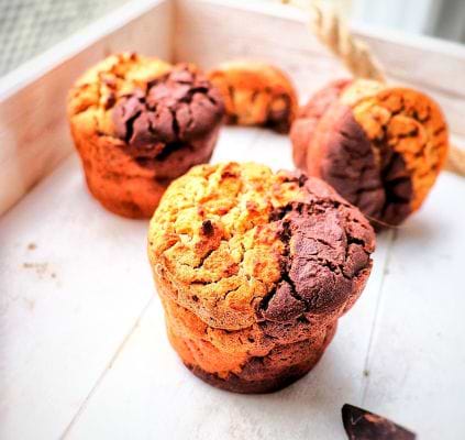 Astuce : Laissez un des moules vide et remplissez-le d’eau. Enfournez-le ensuite avec les autres moules, cela permettra au muffins de bien gonfler et d’avoir une consistance bien aérée à l’intérieur.