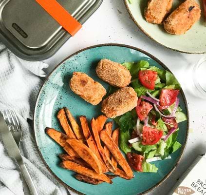 - Vorm afgeplatte knoedels en rol ze in broodkruimels.