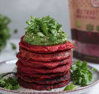 Hartige rode bieten pancakes