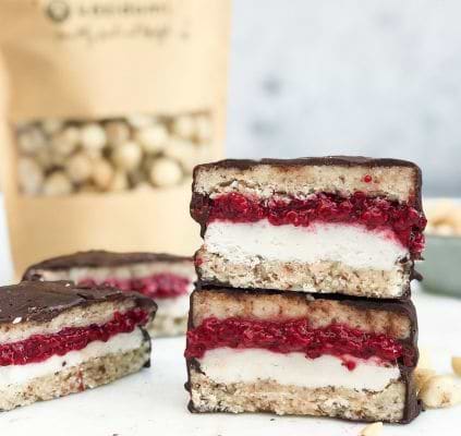 - Om de koekjes te bereiden, mengt u de geraspte kokosnoot, de macadamianoten en het amandelpoeder tot een fijne textuur. Voeg vervolgens de kokosnootboter, de ahornstroop en het vanillepoeder toe aan het mengsel.