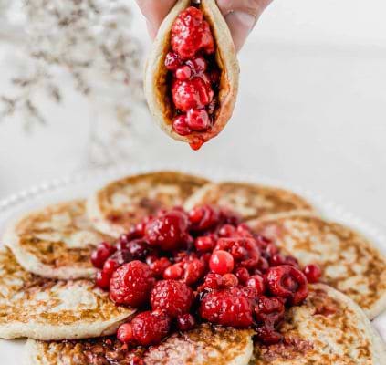 - 2 kopjes frambozen en veenbessen (bevroren rode vruchten)