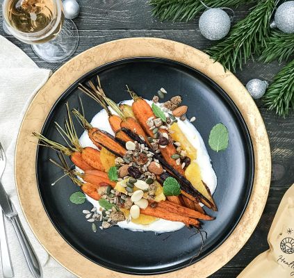 Kerstvoorgerecht: gegrilde wortelen en yoghurt